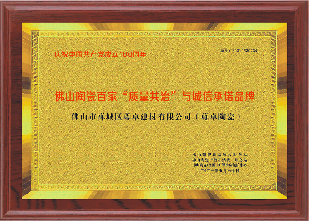 佛山陶瓷百家“質(zhì)量共治”與誠信承諾品牌